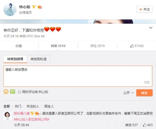 今天林心如一则“有你正好”的微博刷了一天屏,引发各种扑朔迷离的猜想,网传林心如将入职某互联网公司,甚至有微博直指其新东家是优酷土豆。