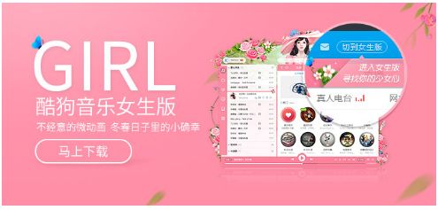 在“花房”中听《花房姑娘》究竟是怎样一种体验?安装酷狗音乐新版PC客户端就知道了!日前,酷狗音乐正式推出全新女生版PC客户端,给广大女生