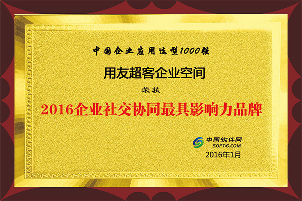 1月19日,“2016中国企业应用选型1000强”榜单揭晓,用友超客旗下企业空间、超客营销两款产品,凭借社交化、移动化和商业模式创新,以及独特的