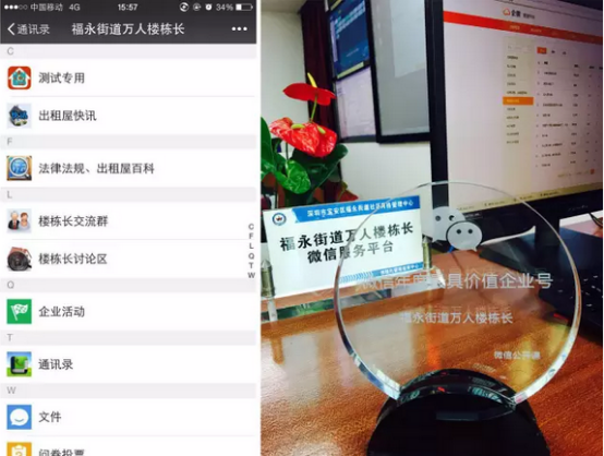 近日, 2016微信公开课PRO版“微信之夜”盛典晚会在广州国际媒体港隆重举行, 企微云平台用户“福永街道万人楼栋长”获得“微信年度最具价值