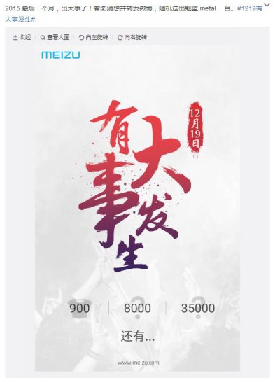 今日上午魅族科技官方微博发布了一张神秘海报。纵观整张海报,设计简洁,沿袭了魅族一贯简约的设计风格,灰白的底色中似有人影的窜动,高举的
