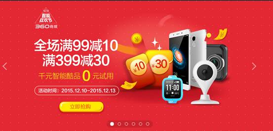 随着“双12”电商狂欢节的逼近,360商城日前上线了“智能狂欢节·一起智造奇迹”系列主题促销活动,减、降、免、送四大环节倾情送福利,在雾霾
