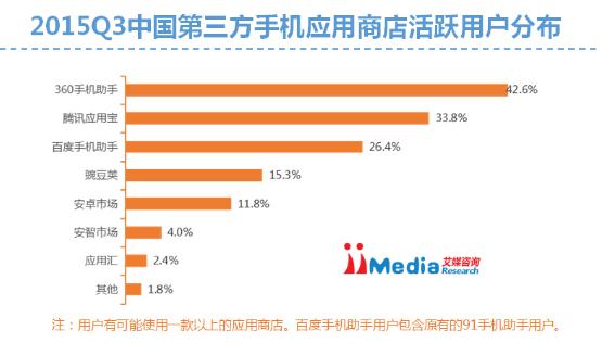 日前,国内知名的数据咨询公司艾媒咨询发布了最新的《2015Q3中国手机应用商店季度监测报告》。报告显示,截至2015第三季度,第三方手机应用商