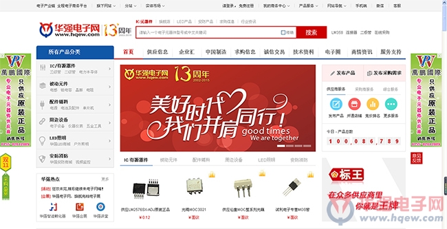 华强电子网作为国内电子元器件领域遥遥领先的垂直B2B网站,在为众多供应商提供信息平台,在线供求信息高达一亿2千万条,自新版首页上线以来