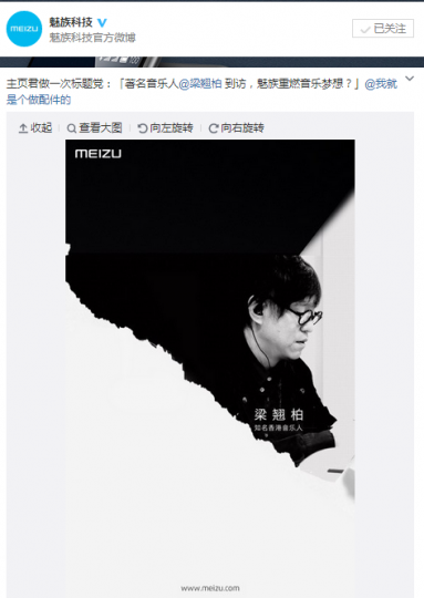 11月23日,魅族公布了一张梁翘柏海报。梁翘柏到访魅族一事被官方认可,但微博只称:“着名音乐人@梁翘柏到访,魅族重燃音乐梦想?”