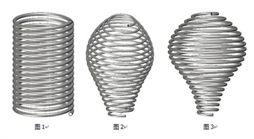 常见的弹簧是圆柱形(如图1)的,三维CAD设计师使用3D软件很容易就能做出效果图。而一些异形的弹簧(如图2 图3),其实只要巧用扫掠功能,也是