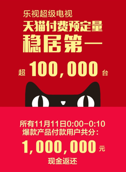 11月10日消息,仅隔一天,乐视超级电视就再次刷新自己昨天在天猫平台创下的8万台电视预售纪录。最新的天猫数据显示,截至目前乐视超级电视在天