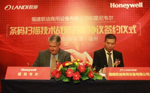 2015年10月28日,联迪商用副总裁刘世英与霍尼韦尔传感与生产力解决方案部OEM全球营销市场负责人Kai Figwer在福州香格里拉大酒店签署了...