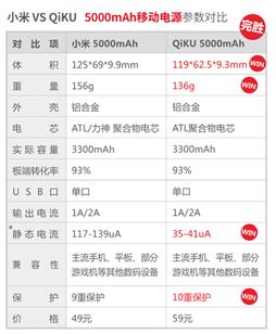在5000mAh和10000mAh这两大容量移动电源中,小米和360奇酷各自有自己的产品,不过,从便携性、性能和保护措施而言,堪称小字辈的QiKU产品显然