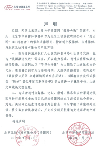 面对铺天盖地的“融资失败捉股奸”恶性谣言,美团决定不忍了:报警并追究造谣者刑事责任!以美团之体量,以抹黑之严重,以影响之恶劣,放眼整个