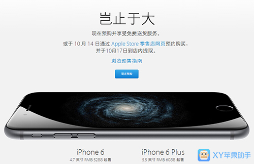 今日,苹果官方开启了网上在线商店的预售通道,新的iPhone 6/Plus售价分别为5288与6088元起,10月10日至10月16日,大家都能够从苹果在线商店