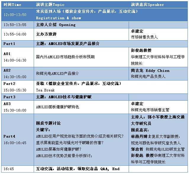 OFweek显示网联手和辉光电将于7月31日在深圳益田威斯汀酒店举办"2014和辉光电AMOLED新产品推介暨健康护眼研讨会"主题研讨会。