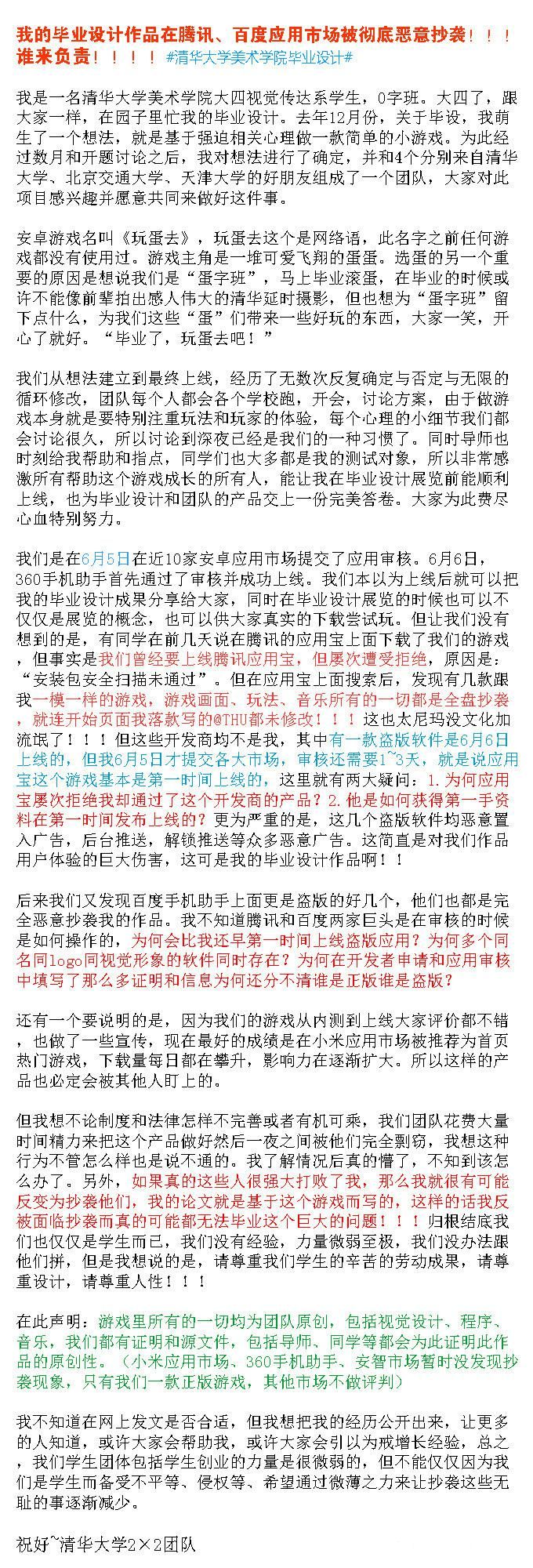 据事主回忆,在腾讯应用宝平台出现盗版前,他曾多次向腾讯方面提交“玩蛋去”的上架申请,但均被腾讯以“安全扫描未通过”为由拒绝。