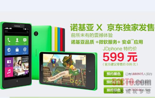 尽管上周五诺基亚才正式在内地发布了旗下第一款安卓手机诺基亚X,但是京东早已经开启了诺基亚X的预售。预约的总人数已破千万,假如数字可靠,足