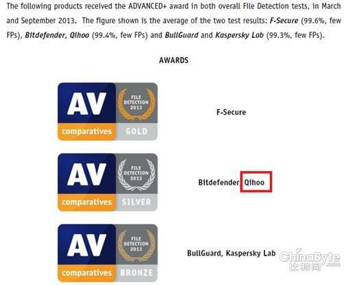 近日,国际权威反病毒评测机构AV-Comparatives(以下简称AV-C)发布了《2013年度安全产品测试总结报告》。其中,来自中国的360杀毒在“恶意软