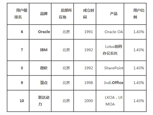 继中国OA软件选型排行榜11-20名榜单发布之后,经过一周的酝酿,OA软件选型排行榜6-10名今天正式发布,OA软件用户量前五名将于2014年1月17日发布。