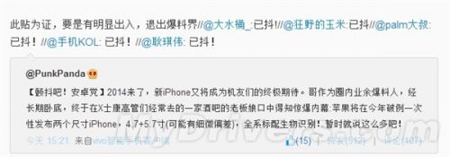 1月3日消息,微博上再次传出了关于iPhone 6的消息:今年苹果将会破例发布两个尺寸的iPhone。