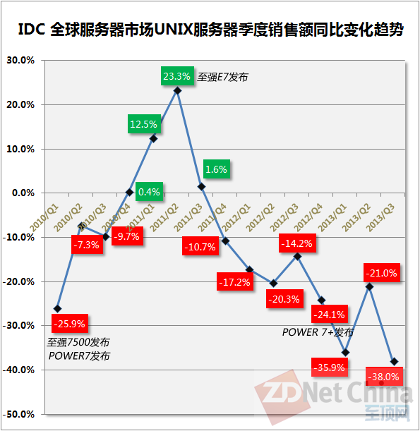 随着云与大数据等新兴IT技术与趋势的不断升温,为数据中心带来了明显的变革。与此同时,传统数据中心里的王者——UNIX服务器销售额不断萎缩。