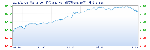 北京时间11月27日消息,今天,苹果的股价在美国收盘时上升了将近2%,创下了今年1月份以来的历史新高,股价达到533.40美元,市值达4799亿美元。