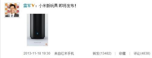 11月19日消息,小米创始人雷军昨晚发布微博消息称,小米将发布一款新“玩具”并附上一张像极了苹果Mac Pro的新品效果图。