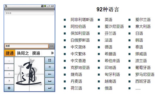 11月11日,捷通华声宣布推出可识别92种语言的灵云手写识别技术。该项技术的推出,标志着灵云手写识别技术已能够覆盖全球90%以上的人口与地区。