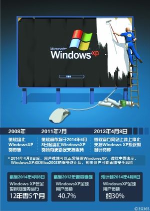微软催促用户更换操作系统:Windows XP已成文物,用户必须明白,使用如此老的平台正面临着风险。