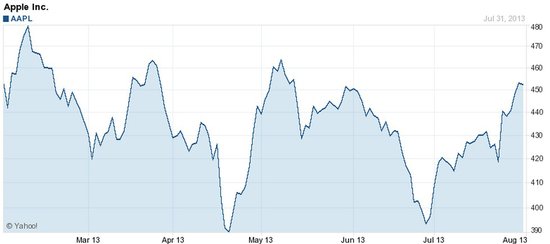 北京时间8月2日消息,据国外媒体报道,在二季度业绩公布的前后,苹果的股价在一路下跌之后出现了企稳反弹的迹象.