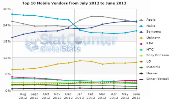 北京时间7月11日早间消息,互联网流量分析公司StatCounter周三报告称,三星的产品已超过苹果公司,在全球移动互联网使用量方面排名第一。