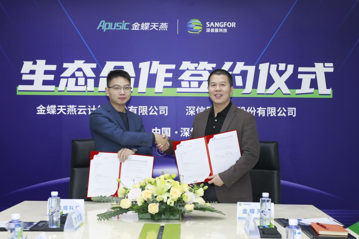 12月13日,深圳市金蝶天燕云计算股份有限公司(以下简称“金蝶天燕”)与深信服科技股份有限公司签署了生态合作协议,双方将在信创领域技术互