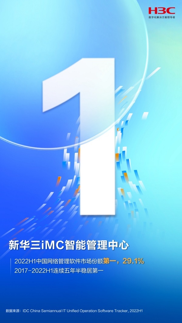 日前,国际数据公司IDC发布《中国IT统一运维软件市场报告,2022H1》,报告显示,在2022年上半年,紫光股份旗下新华三集团在网络管理软件(NMS