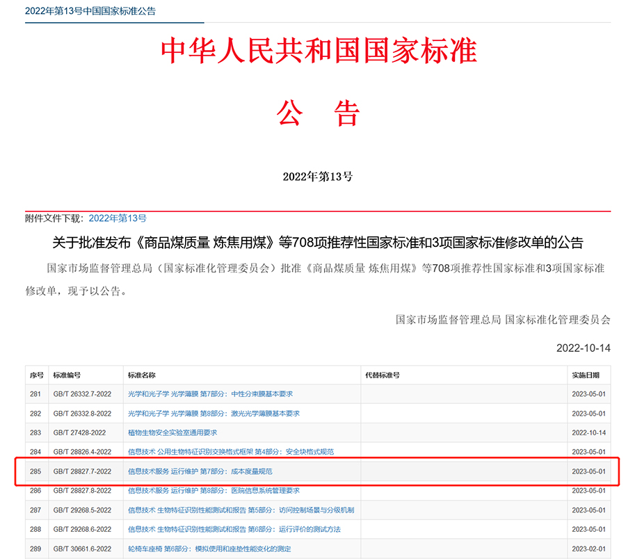 热烈祝贺GB T 28827 7-2022《信息技术服务 运行维护 第7部分:成本度量规范》国家标准正式发布