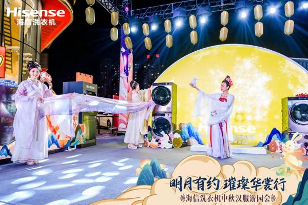 9月9日晚,在由海信洗衣机推出的“明月有约 璀璨华裳行”中秋汉服秀游园会上,“霓裳嫦娥”身披4米披帛霓裳曼舞、拜月点灯,让这场精彩绝伦的