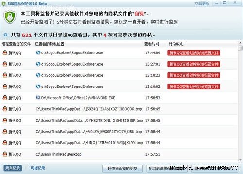笔者昨天12:30:56安装360隐私保护器并开始监测
