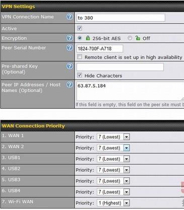考察链路汇聚特性时,在在Balance380和PepwaveMax上,我都发现另外一些VPN连接创建功能。这些设备可配置用于以下类型的VPN连接: