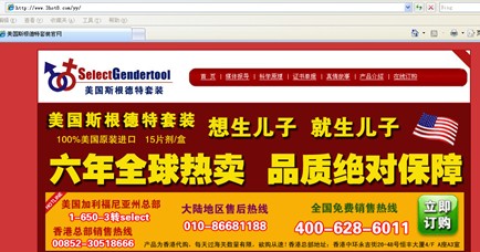 很多网站打着“想生儿子就生儿子”的幌子对用户进行欺诈,QQ电脑管家安全中心提醒:消费者切勿盼子心切相信虚假网站宣传,导致金钱和精神的双
