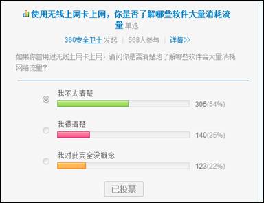 来自360安全中心的一项小调查显示,超过7成的网民表示,并不确定究竟是哪些软件在消耗流量,超过2成用户甚至完全不懂流量消耗的概念