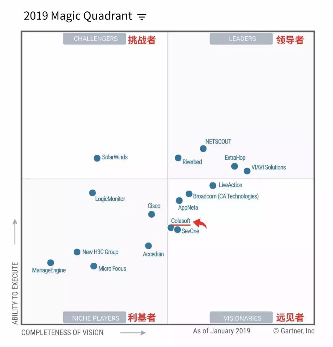 2019年2月,Gartner 正式对外公布2019年度NPMD(网络性能监测与诊断)魔力象限,其中,通过报告数据,2019年预估的市场规模为22亿美元,复合年
