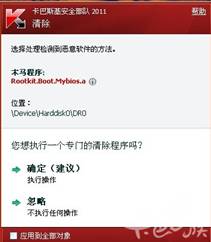 最近有卡巴斯基杀毒软件用户发现,电脑反复出现“Rootkit.Boot.Mybios.a”木马程序的报警提示,杀毒后又会重新出现。据悉,这是盗版GHOST系统