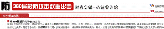 钓鱼网站最恨的莫过于360安全卫士的拦截提示,使用百度搜索“防360屏蔽”,搜索结果近450万条,然而这些只是网络骗子“黑吃黑”的伎俩。