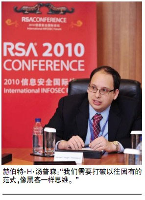 在首届于中国举办的RSA 2010信息安全国际论坛上,信息安全领域最具影响力的五大思想家之一赫伯特·H·汤普森指出:“黑客正在不断改变攻击方