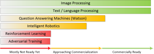 因此,取得较好商业表现的多是图像处理、文本和语音识别,并且那些借力谷歌、IBM、微软和其他巨头的初创企业成果更多。