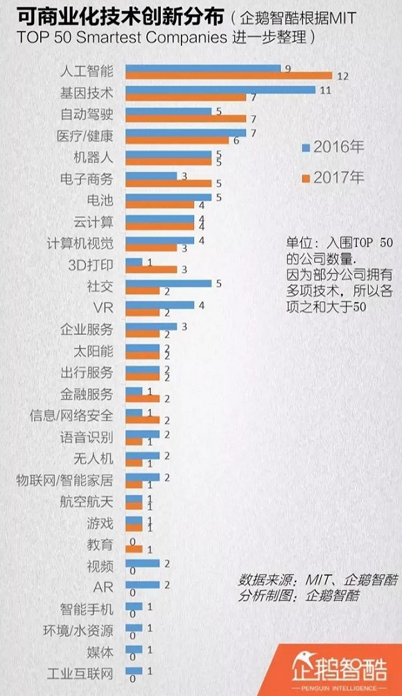 企鹅智酷对MIT的年度评选长期关注,并在去年基于2016榜单推出了《全球“可商业化”创新报告:50家公司和28个技术领域》。