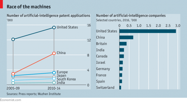 尽管目前为止,中国还正处于刚刚起步阶段,但在人工智能领先地位的角逐中,它在步步逼近美国。