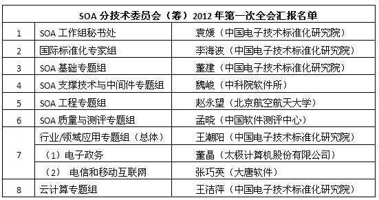 全国信息技术标准化技术委员会SOA分技术委员会(筹)于6月28日在北京新世纪日航酒店召开了2012年第一次全会。