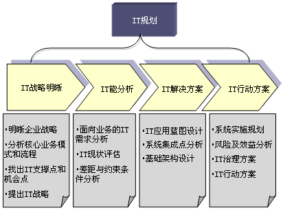 IT规划即信息化建设规划,是指在企业发展战略目标的指导下,结合企业管理需求、业务流程和信息化基础,对信