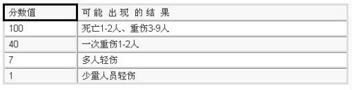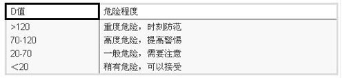 结果分为重度危险、高度危险、一般危险、稍有危险四个等级。具体划分见下表: