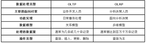 OLTP与OLAP的主要区别
