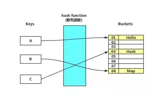 为什么hash策略会出现这个问题呢?首先有必要先了解一下hash是如何进行的。hash策略就是下图这样的一个散列函数。在函数不变的情况下,A永远对应01,B对应04,C对应08。