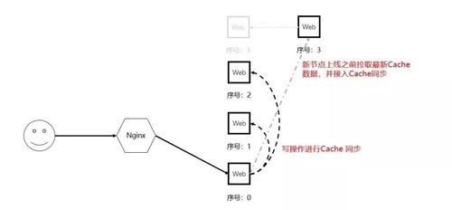 这是最简单粗暴的方式。根据第一节的案例来看,导致问题的原因是节点3没有用户的Session。那么很容易想到,在节点3运行之前把Session相关的Cache数据复制过去呗。并且在多个节点之间持续保证数据的同步,也就是说,每一台节点上都存在每个用户的Session数据。