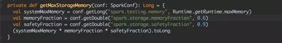 StorageMemory=systemMaxMemory*storageMemoryFraction(默认0.6)*safetyFraction(默认为0.9)=0.54,